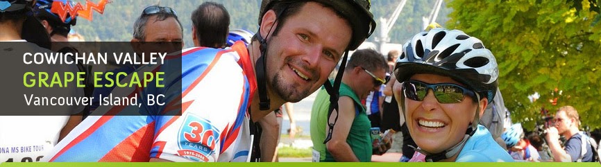 Cycling to the farms and wineries in the Cowichan Valley sounds appealing to you ? What if it were to raise money to fight against MS. There is a group from the Gabriola Lions that are going to participate in this two day event on July 5/6 2014. One of our close friends has MS and we’d love if they could find a cure, so that her life and the 100,000 Canadians living with it, could enjoy a pain free life as well. If you’d like to sign up and join us for a great weekend, please visit the Grape Escape website : http://www.cowichanvalleygrapeescape.com/