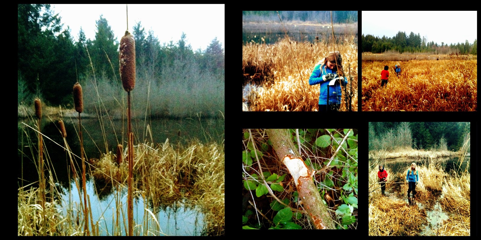 We had to stop several times on our exploration of the marsh, not because it was a difficult walk, but because the kids had found one more thing they had seen, wanted to research, or wanted to remember, and they needed to make a note of it. After a bit of exploring, my son pointed out the Beaver dam across the marsh. With a little more exploration we saw the trees that the beaver had been busy chomping down, and the pathways from the marsh to the trees.